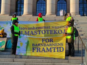 Viisi vuotta sitten Eduskuntatalon portaille kokoontui lastenlastensa tulevaisuudesta ja planeetan tilasta huolestuneiden isovanhempien ryhmä. He luovuttivat eduskuntaryhmille vetoomuksen pikaisten ilmastotoimien puolesta. Siitä saakka Ilmastoisovanhemmat ovat kokoontuneet Eduskuntatalon portaille perjantaiaamuisin. Orpon hallituksen puutteelliset ilmastotoimet vietiin elokuussa oikeuteen yhdessä muiden järjestöjen kanssa. ”Kun on mukana Ilmastoisovanhempien tilaisuuksissa, saa uutta voimaa”, toteaa yksi ilmastomummo.