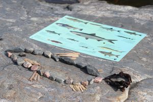 Jaa erilaisia kuvia vesieliöistä ja pyydä rakentamaan eliö rannalta löytyvistä asioista. Vanhempien lasten kanssa voi kiinnittää huomiota eliöiden tuntomerkkeihin ja pyrkiä rakentamaan eliöt mahdollisimman tunnistettaviksi.