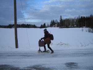 Tiedossa on kahden keikan päivä: Aamulla pidän Helsingissä tunteja, joissa Kaarlo Karhu opettaa lapsille jätteiden lajittelua. Illalla menen vielä aivan toiselle paikkakunnalle pitämään taloyhtiöluentoa. Koska mukaan otettavia asioita on paljon, olen tehnyt jo hyvissä ajoin itselleni selvän listan mukaan otettavista tavaroista: Kaarlo-karhu -tarvikkeet, nimilaput, muistiinpanot, eväät, tietokone, piuha projektoriin ja niin edelleen. Bussipysäkillä kuitenkin huomaan, että itse päätähti Kaarlo Karhu on jäänyt kamarin kaapin päälle istumaan. Mitä mä nyt teen?