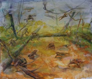 Ihminen on orgaanisessa maailmassa yksi biologinen laji, jonka tulisi löytää uudelleen yhteys luontoon. Matkalla maan keskipisteeseen -näyttelysarjan taiteilijat ilmensivät puhuttelevissa teoksissaan kehollisuuden ja luontoon sopeutumisen välttämättömyyttä digitalisaation, omistamisen ja ympäristöongelmien yhteiskunnassa.